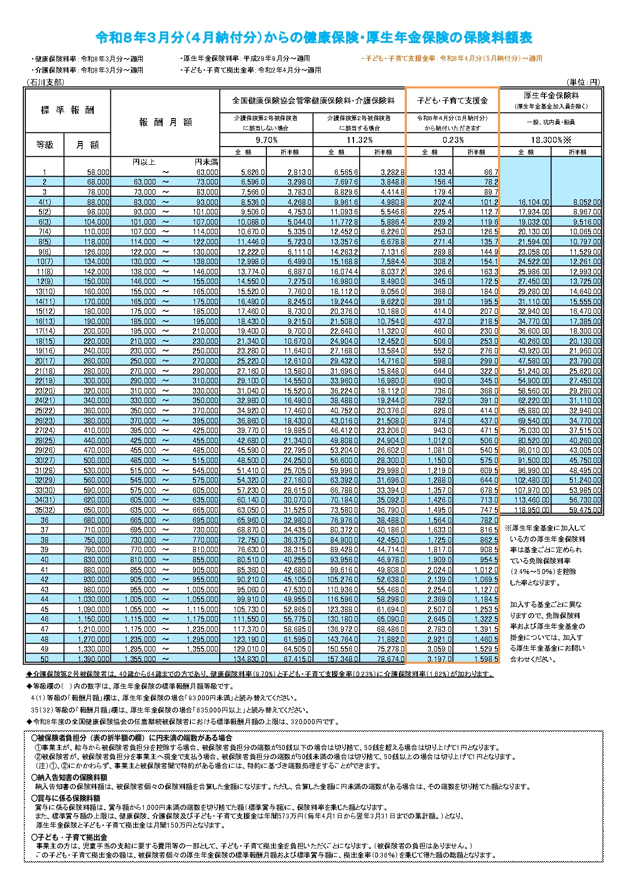 「令和8年3月分(4月納付分)」より、社会保険料が改定されます。